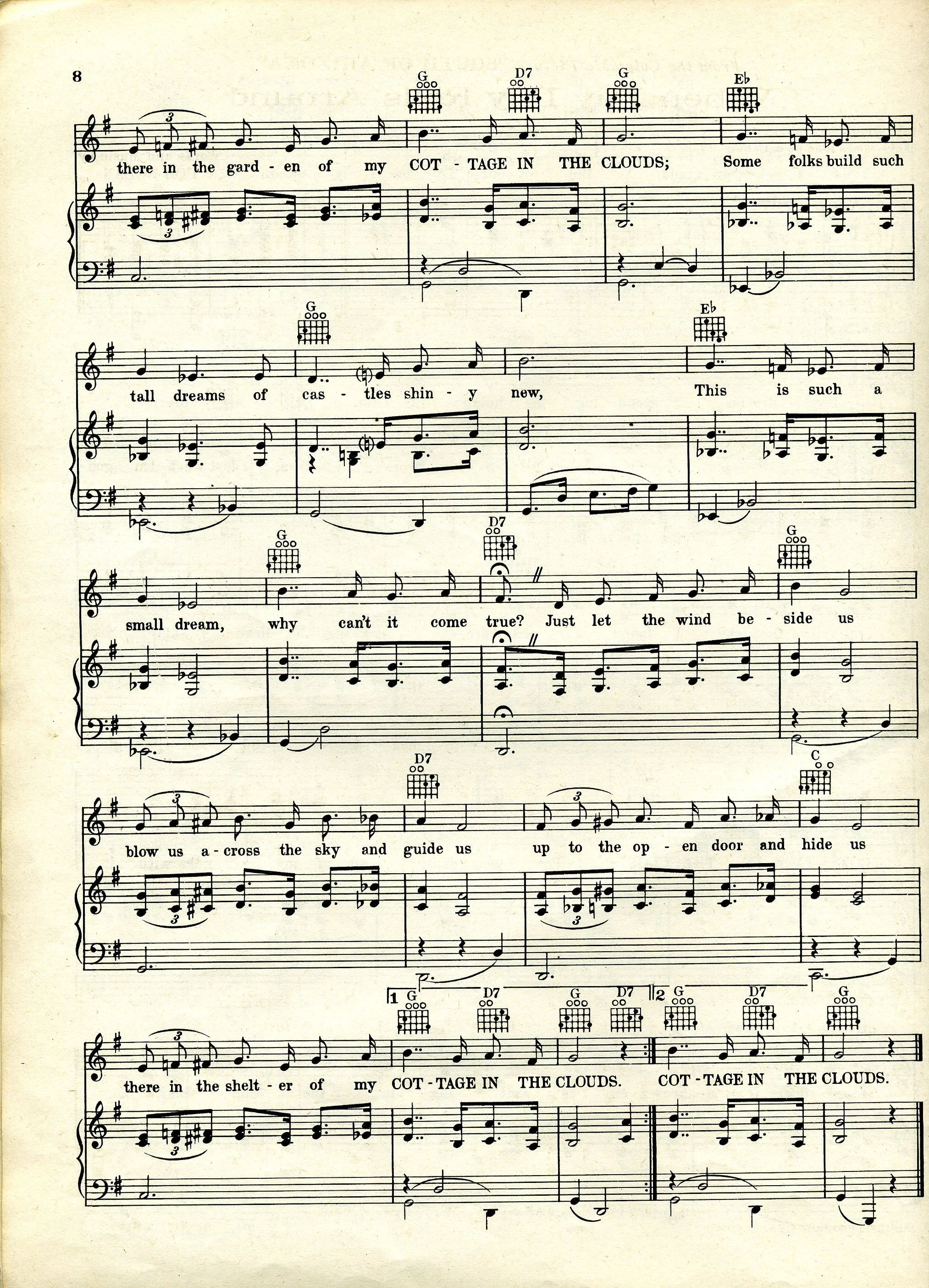 Cottage in the CloudsBob NolanOriginal copyright: March 16, 1939Original publisher: American Music, Inc.