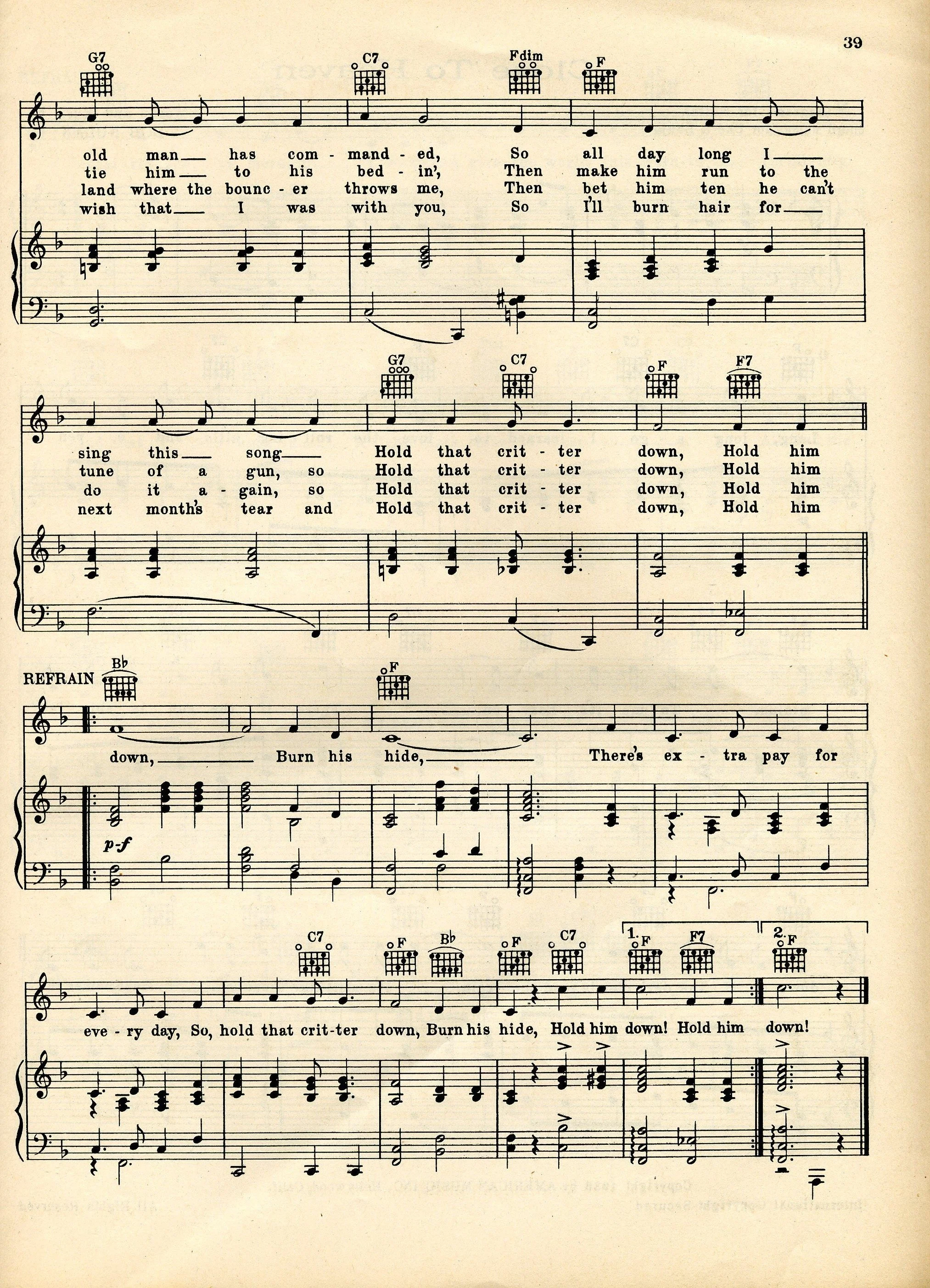Hold That Critter DownBob NolanOriginal copyright: January 9, 1937Original publisher: Cross & Winge, Inc.