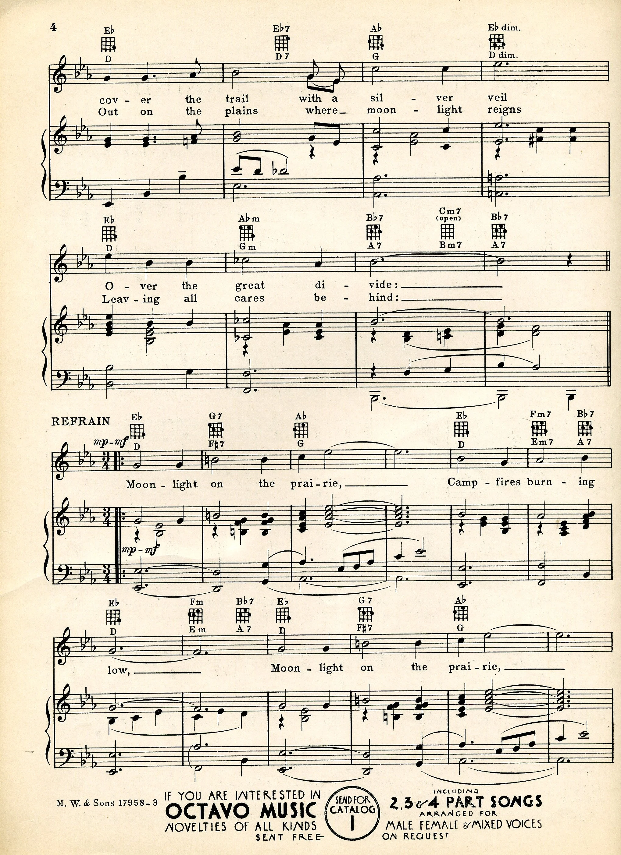 Moonlight on the PrairieBob Nolan/Vernon SpencerOriginal copyright: 1934Original publisher: M. Witmark & Sons, N.Y.