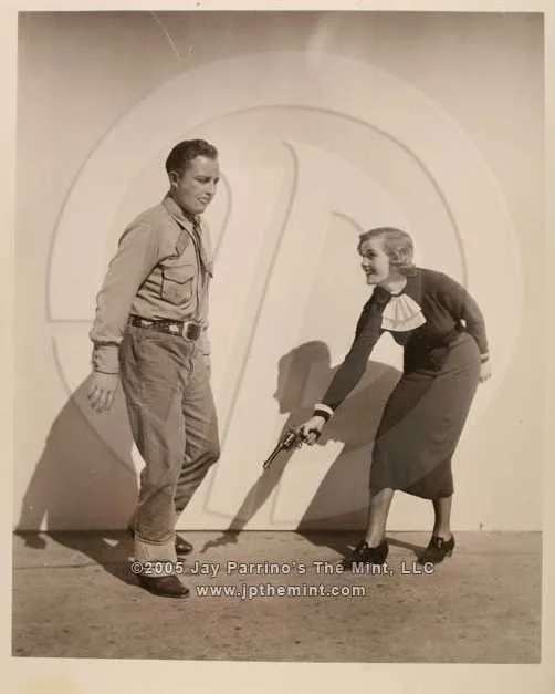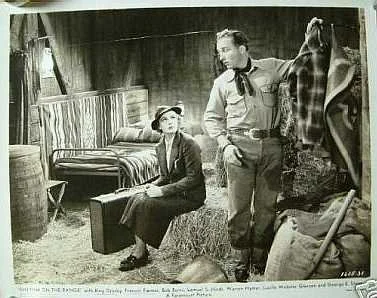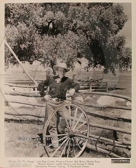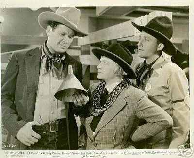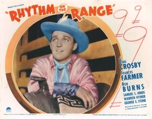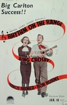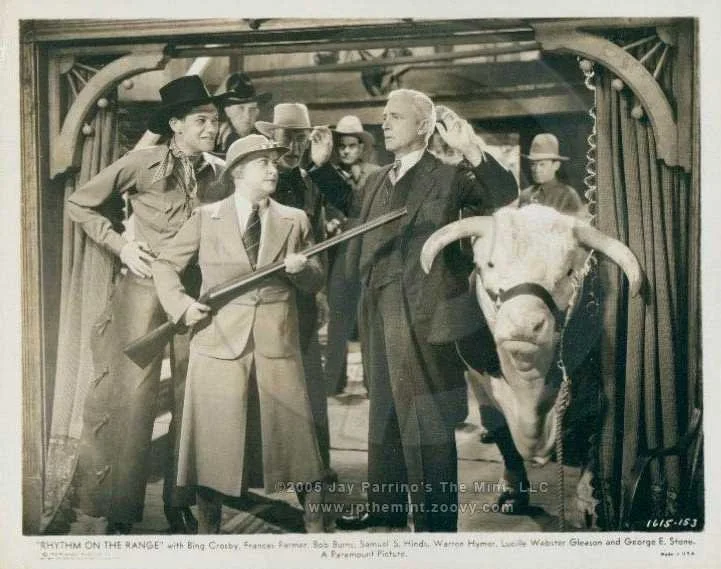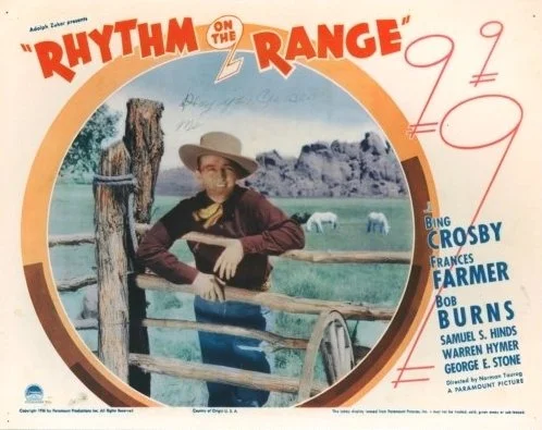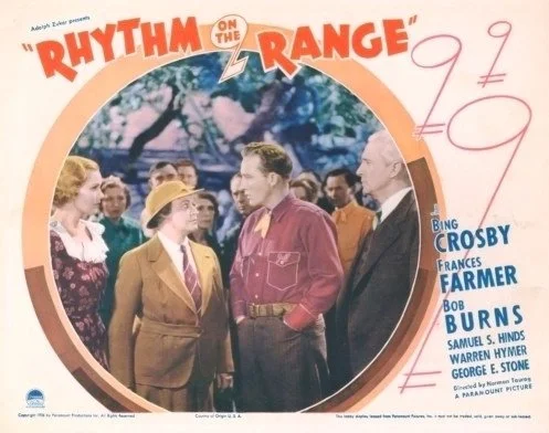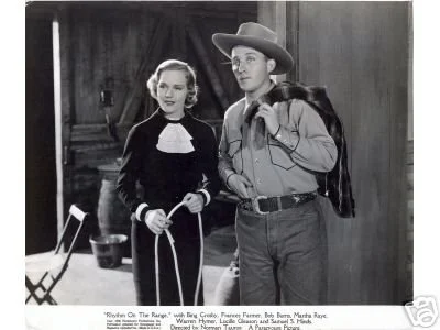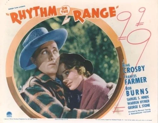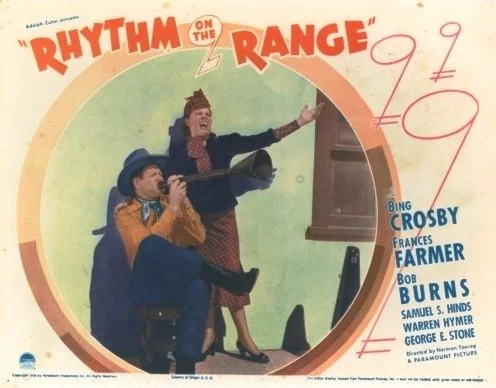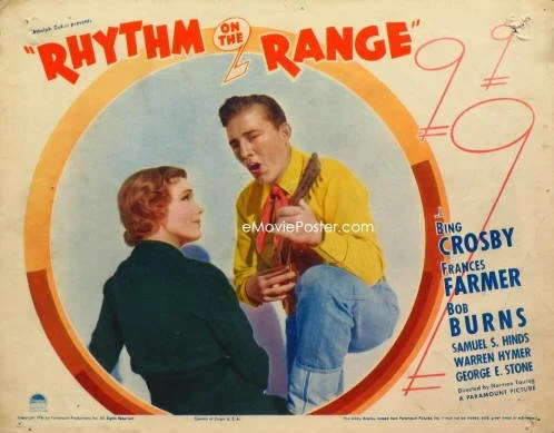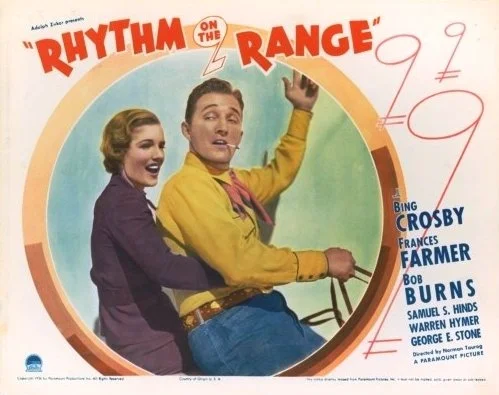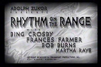 Bing Crosby's only western (outside of the 1966 version of Stagecoach), Rhythm on the Range stars Bing as a casual cowpoke on his way back to the Wide Open Spaces after an eastern visit. He meets a young train stowaway (Frances Farmer), whom he regards as a hoydenish vagabond until learning that she's the owner of the ranch where he works. Farmer resists Bing's charms until he rescues her from a gang of rustlers. Among the supporting cast is Mischa Auer, Bob "Bazooka" Burns, and, in her film debut, 19-year-old Martha Raye. The film also introduces the song hit "I'm an Old Cowhand," which is sung at one point or another by everyone in the cast, including Russian-born Mischa Auer. Rhythm on the Range was remade in 1956 as Pardners, with a few minor alterations—notably the casting of Jerry Lewis in the Frances Farmer role!