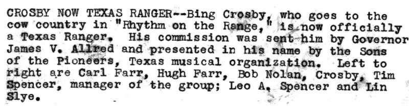 Unless you are a Bing Crosby or a Louis Prima fan, this is an unremarkable musical. It is, however, the second A-Feature film the Pioneers appeared in. With the exception of a close-up when they introduce "I'm an Old Cowhand," the Sons of the Pioneers can be seen tucked away in the background.