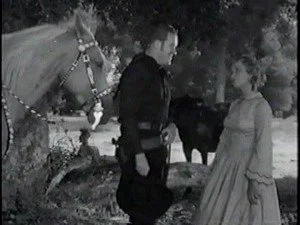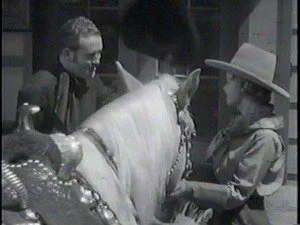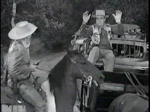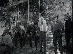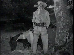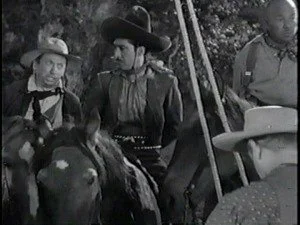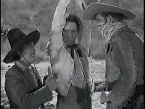 The Singing Kid escapes Hook and his henchman with ease and returns to find Jen to explain to her. While his three compadres protect him from a sharpshooter by dragging the man to the hideout at the end of a lasso, Frank lets Jen know he was her old playmate of the wagon train.