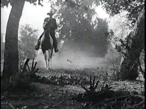 Our four heroes return the herd to its rightful owner and Frank also renews his acquaintance with Jen Coburn, whose family has remained in the area. He attends a barbecue and dance at the Coburn Ranch, wins a horse race and the right to share Jen's lunch. Jen is as yet unaware of his true identity.