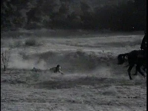 Dressed like Indians, the Bannion brothers attack the wagon and Frank orders young Frankie to take the money, jump from the wagon and hide. Frank is murdered, the Bannions search for the money in vain while Frankie watches from the ditch. He sees Hook arrive and hears him order the Bannions to find him and the money. Because Frankie had lost the money when he jumped out of the wagon, he has to wait helplessly in the ditch while the Bannions find it and then set fire to his wagon. He buries his father then vows to return and make the three criminals pay for murdering him.
