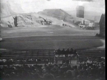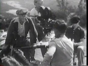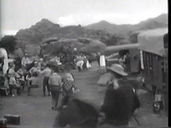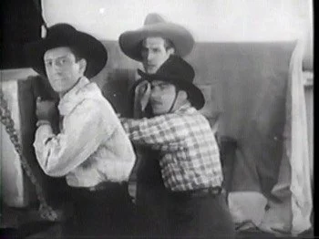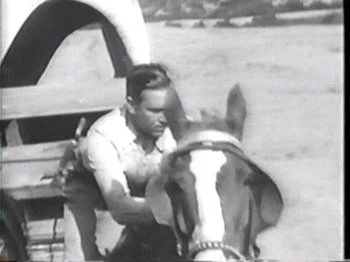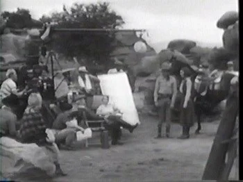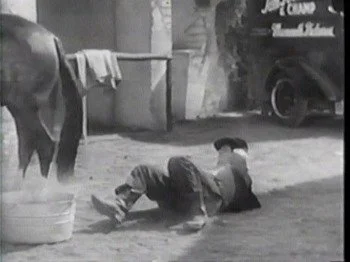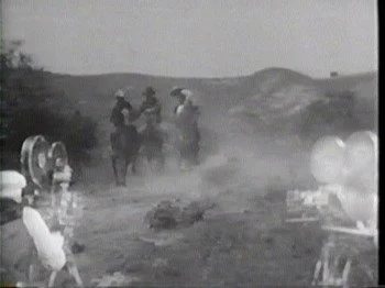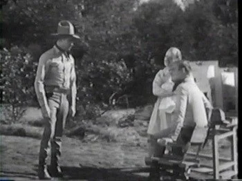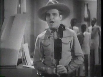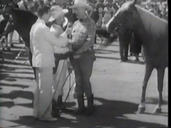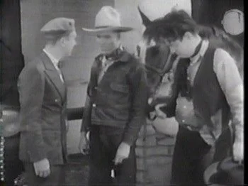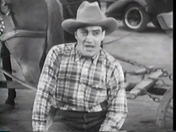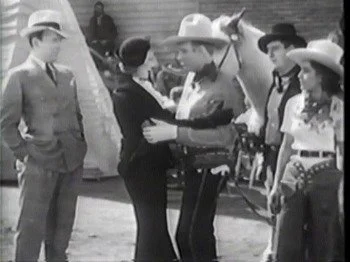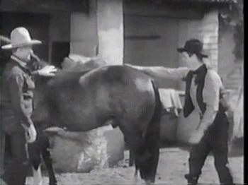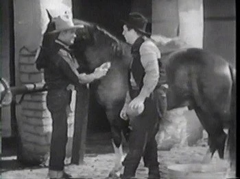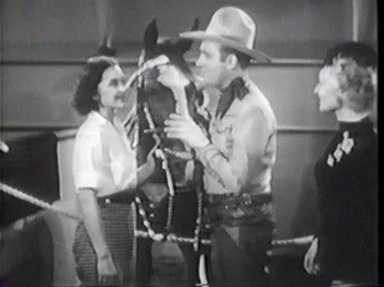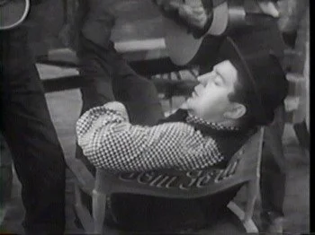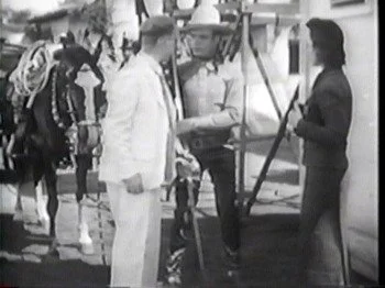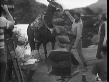 Star of the film, Tom Ford, is grouchily and loudly objecting to redoing a scene. He blames Gene and the Hill Billies for all the noise they are making. Gene and the boys are asked to be quiet and the scene goes on with Tom Ford angrily jerking at Champion's bit, making the beautiful horse nervous.