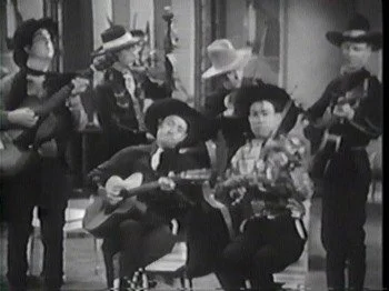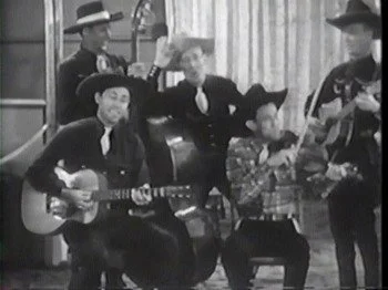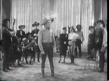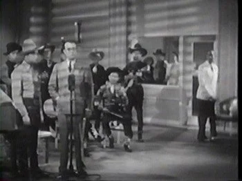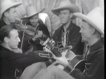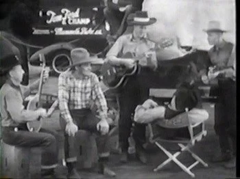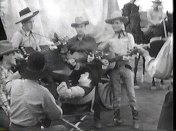 Gene and Frog sing, backed by the Sons of the Pioneers. Max Terhune and his puppet have a part, too, and then the Pioneers.
