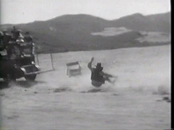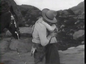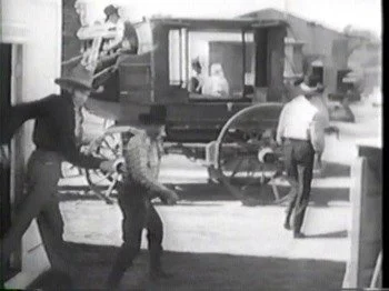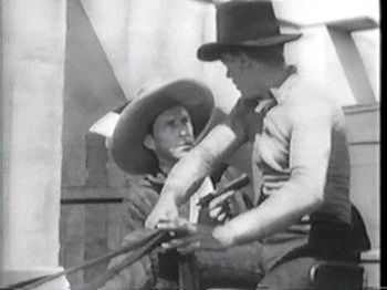 Toodles pointed out the robbers to Gene and the Texas Rangers. The gangsters hijacked the stagecoach, holding a gun on the driver and took off.