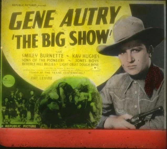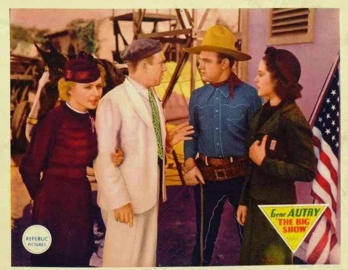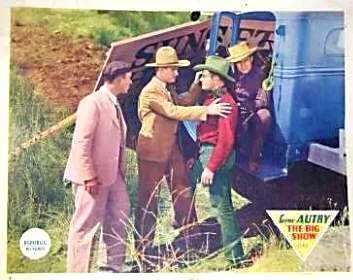 The Big Show is a modestly budgeted but elaborately turned out Gene Autry western. Autry plays "himself," a famous cowboy star, and his own stunt man. When Autry-the-star reneges on a agreement to make a personal appearance at Dallas' Texas Centennial (represented through newsreel shots), Autry-the-stuntman takes his boss' place. This causes confusion with the ladies, and with a gang of mobsters who were hoping to extort money from Autry-the-star. Ever protective of his own image, Gene Autry saw to it that both of his cinematic alter egos prove worthy of their salt in a climactic fistfight with the villains. Also appearing in The Big Show is a radio aggregation called the Sons of the Pioneers, featuring future Gene Autry rival Roy Rogers. (Unknown contributor)