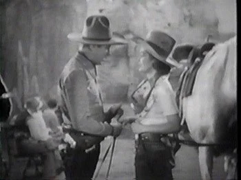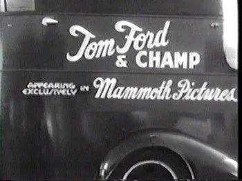Right then, Frog arrives in Tom Ford's truck and trailer. He saddles Champion and Gene heads off to round up the cattle. It isn't until then that the lady notices the inscription on Gene's outfit and asks if this is really Tom Ford. Of course, Wilson tells her it is.