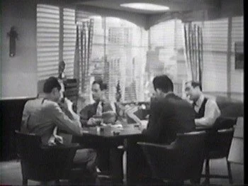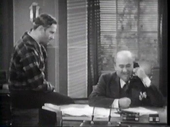 Swartz's two secretaries, ears to the door, listen to him rant at the hapless Lee Wilson. Lee is informed that he will be fired unless he finds Ford and gets him to Dallas.