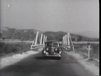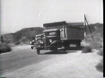 Gene, worried about pretending to be Ford, narrowly misses a head on collision with a cattle truck. The cows scatter.