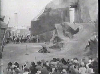 Back at Mammoth Studios, the cast and crew drives in to be met by Lee Wilson who is frantically looking for Tom Ford. He had forgotten to tell Ford that three days ago he was booked into the Texas Centennial. Lee is at his wit's end because it means he will lose his job unless he thinks of something—fast.
