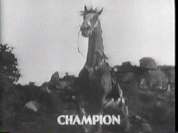 Frog lets Autry in on his dreams—he would like to be a stuntman, too. Autry asks him if he can do a crupper mount. Frog tries but lands in the dirt behind a patient Champion.