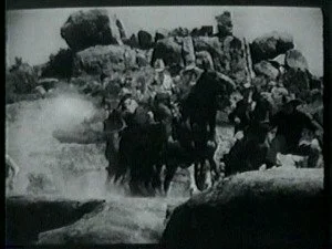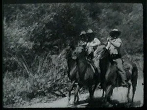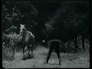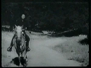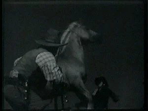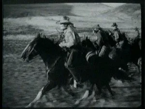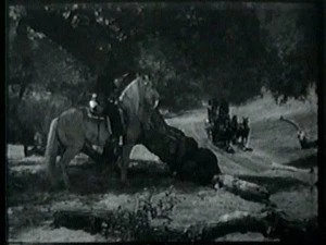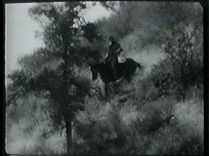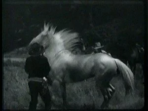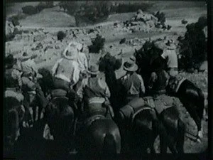 A large group of mounted riders watch for Bill and ambush him as he lopes along. Bill evades them by jumping off Smokey and hiding while Smoke goes on alone.