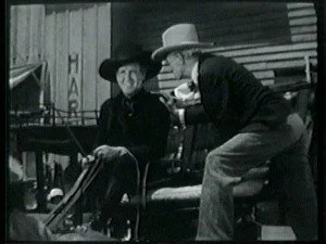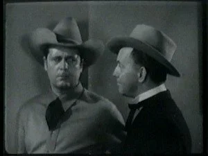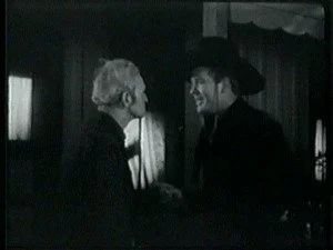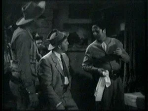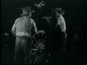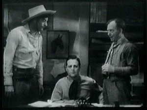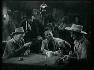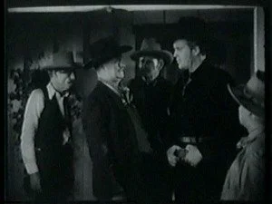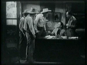 Later, in the saloon, Roy discusses his plans with his brother and Bud, plans for shutting Bill up for keeps. As usual, Barton Banton eggs him on maliciously. Frank volunteers to dress up like Bill, steal Smoke and hold up the morning stage. Roy further suggests that Frank shoot someone during the holdup to make it look even worse for Bill.