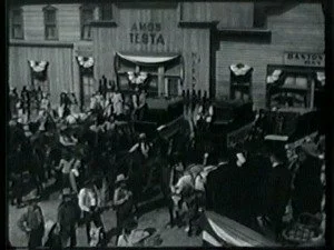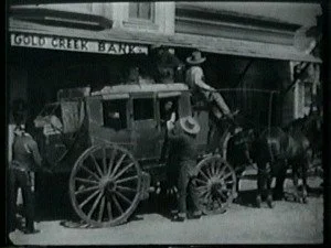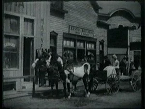 In Gold Creek, Dan Tolliver and his daughter, Mary, drive up to the front of the Banton Brothers store. Roy Banton exchanges pleasantries with Mary and asks her if she would like to go for a drive with him. Mary pleads an earlier engagement and then their attention is drawn to the pony express rider galloping in bareback.