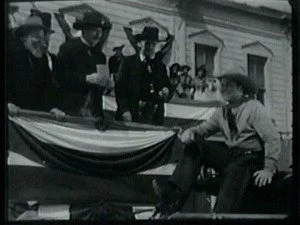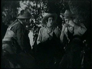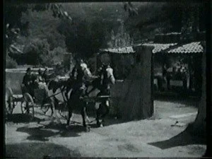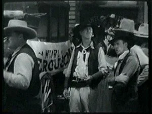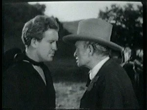 Bill quickly tosses the mailbag to the next rider and tells the curious townspeople how it came about that he was riding an Indian pony. It is obvious that Bill does not believe they were real Indians. Mary joins the group around him and Roy's brother takes the opportunity to make malicious remarks about pony express riders attracting the girls every time.
