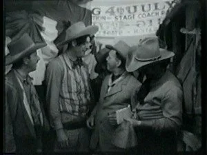After seeing a very much alive Bill, the outlaws head to town fast. The outlaws pile off their horses in front of the Benton Brothers store and burst in with their news. Roy realizes Bill will be at the dance and makes plans to "fix him so he won't be able to get out of bed, much less drive a race." His brother cannot resist needling him some more