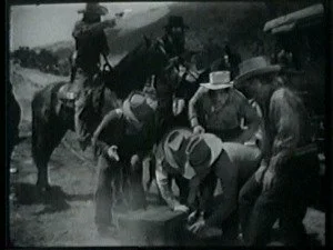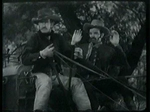When the stage comes into view, they ride down and stop it. Bill, the Sheriff and the rest watch in satisfaction then race down to apprehend them.