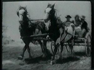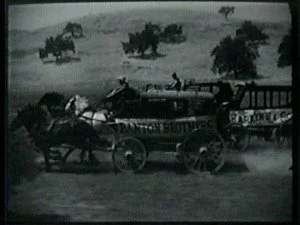 The movie ends on a happy note as the newly-married bridegroom serenades his bride in a bright new stagecoach with "Harkins Stage Lines" emblazoned on the door.