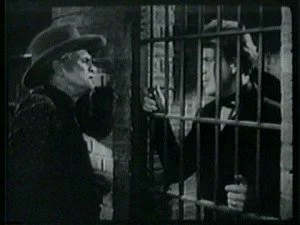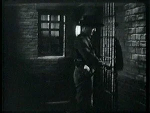 Pete loses no time putting his own little plan into effect. He goes into the cell with Bill and chattily sympathizes with him. Pointing through the cell window, he indicates that Smoke is waiting for him and all he has to do is walk out. Bill listens quietly then refuses to leave. He tells Pete that he had nothing to do with the holdup and he can prove it. He walks back into the cell but slides quickly behind the wall, unseen. Pete walks in with his gun drawn and Bill disarms him then forces him to admit that Roy Banton put him up to this calumny. He locks Pete in the cell, climbs through the window and rides away on Smoke, straight to Tolliver's.