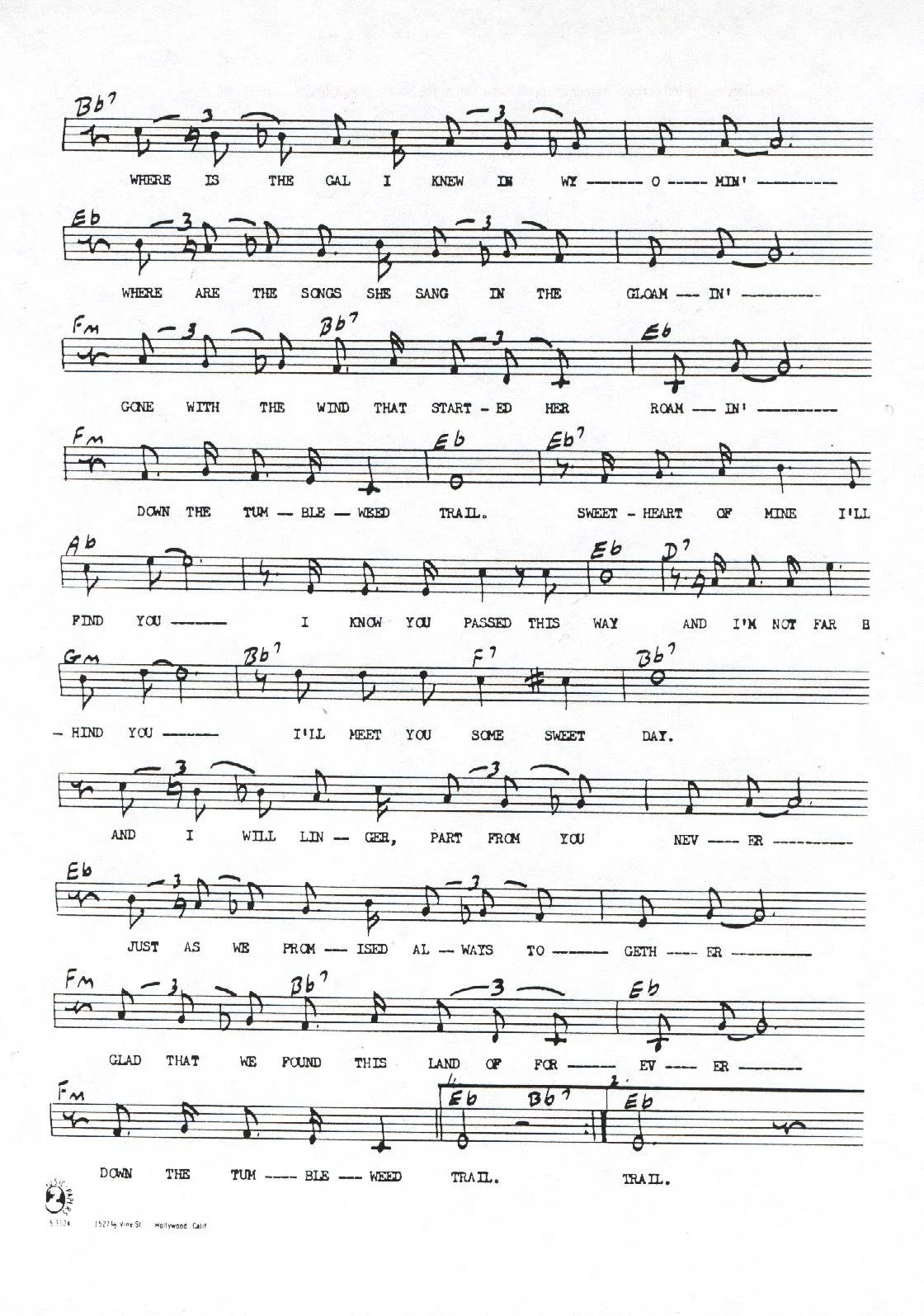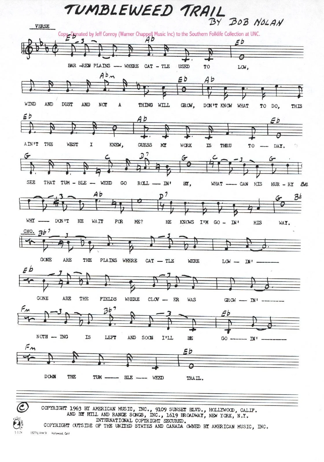 Tumbleweed TrailBob NolanOriginal copyright: September 10, 1963Original publisher: American Music, Inc.