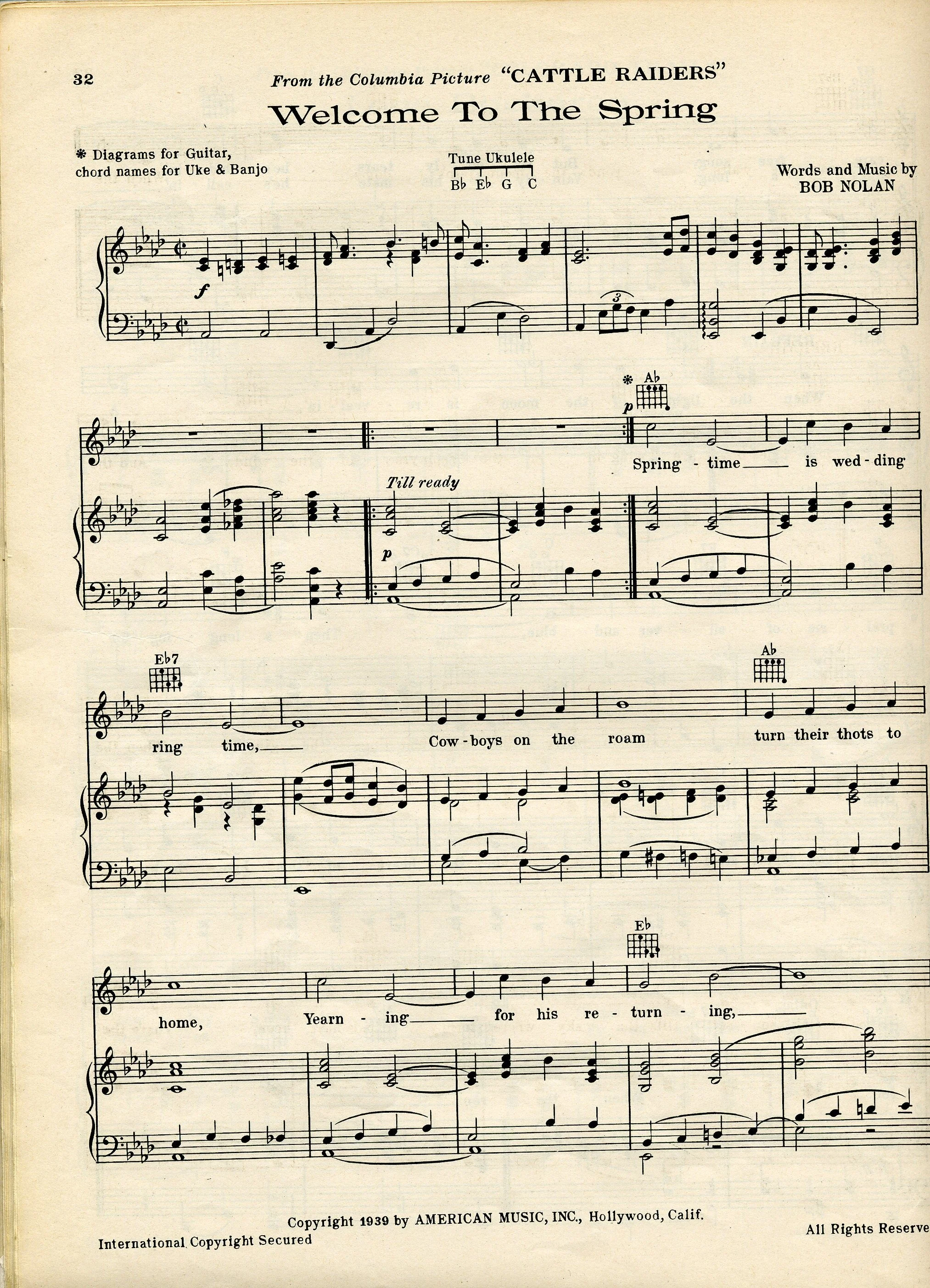 Welcome to the SpringBob NolanOriginal copyright: February 16, 1938Original publisher: American Music, Inc.